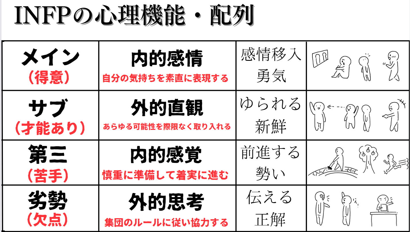 INFPは内向、直観、感情、カオス型である。↓詳しい解説は以下より