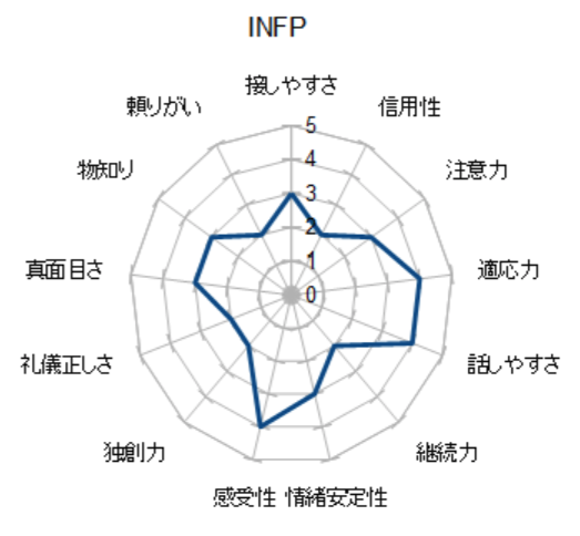 ※3が標準になります。INFPは、感受性、話しやすさ、適応力が平均以上!