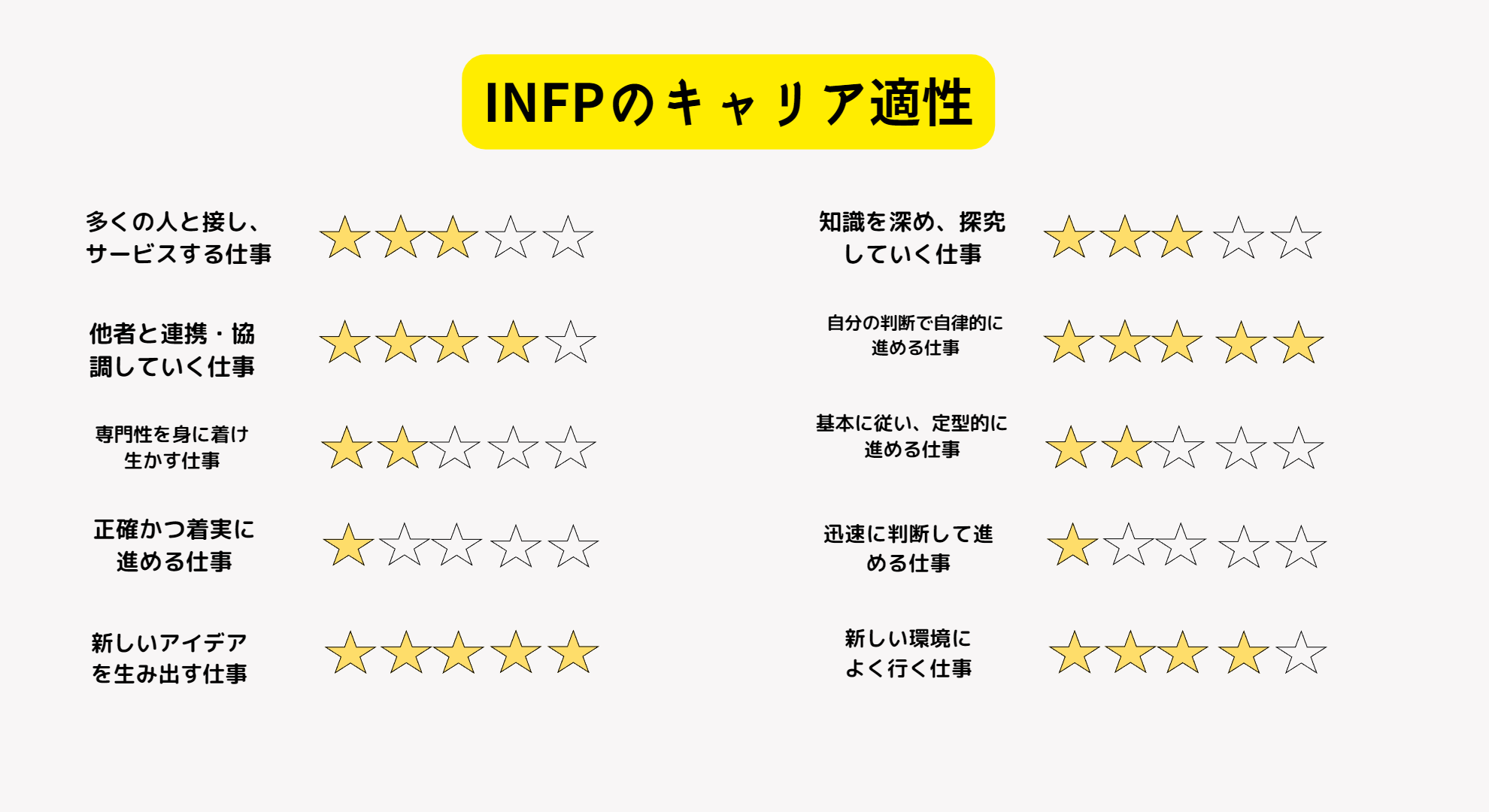 ※3が標準になります。INFPは、感受性、話しやすさ、適応力が平均以上!