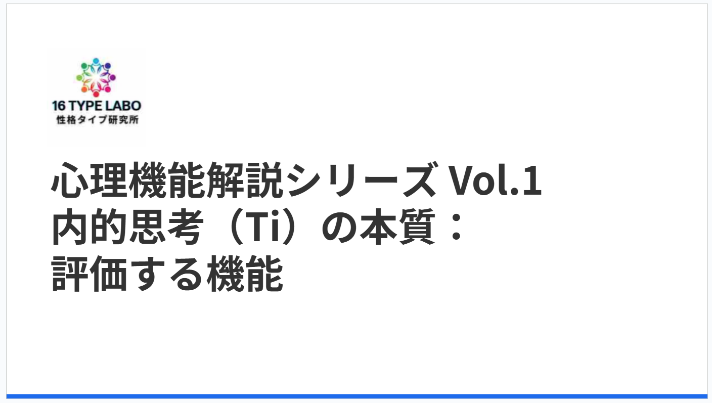 初学者向けに16タイプ、MBTI、心理機能の各機能を1つずつ、どういう機能ですよってことを解説していこうかなと思って。その第一弾として、今回は内的思考機能です。